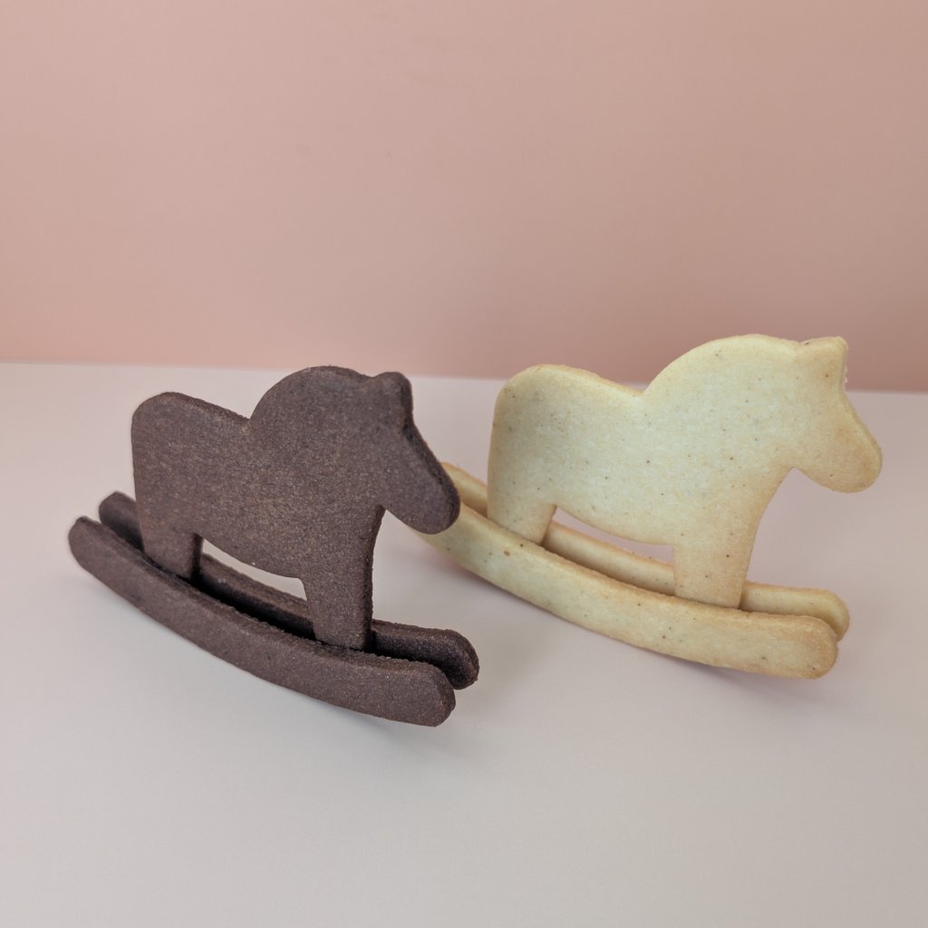 Oživte své pečení s naší originální 3D skládačkou houpacího koně. Tato plastová vykrajovačka je navržena tak, aby se z ní dla snadno slepit houpací kůň. S touto formičkou snadno vytvoříte roztomilé sušenky pro děti nebo perníčky. Jde o skvělý způsob, jak zabavit celou rodinu a vytvořit nezapomenutelný zážitek z pečení. Tato sada 2 vykrajovátek pomůže i v rozvoji kreativy Vás a vašich děti - koníka můžete ještě doladit zdobením. Skládačka je vhodná nejen na těsto, ale i na marcipán nebo modelovací hmotu, což z ní dělá univerzální nástroj pro všechny vaše kreativní projekty. Tato netradiční vykrajovačka je skvělým doplňkem pro každého, kdo hledá nové a zábavné způsoby, jak tvořit.