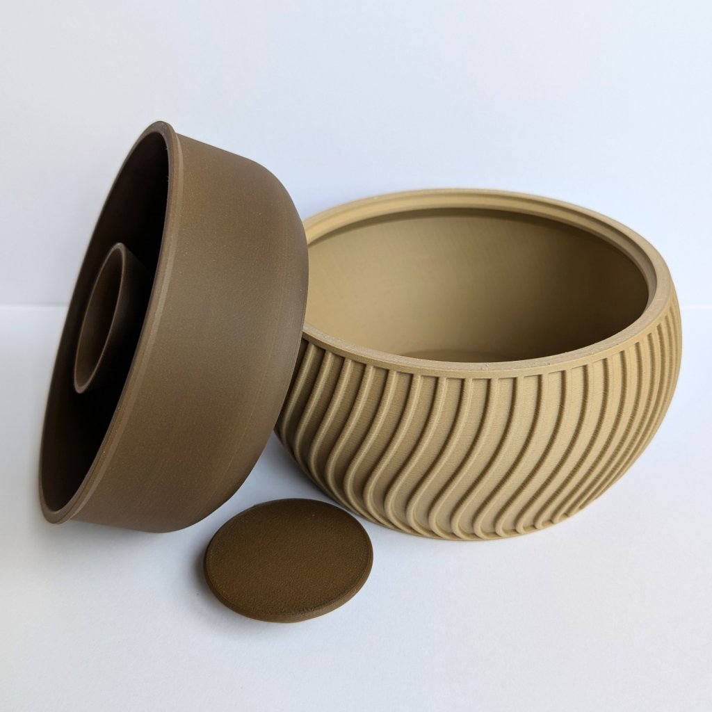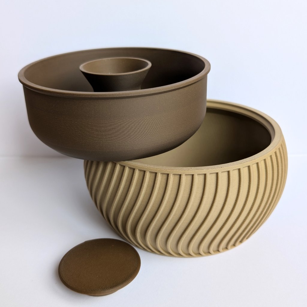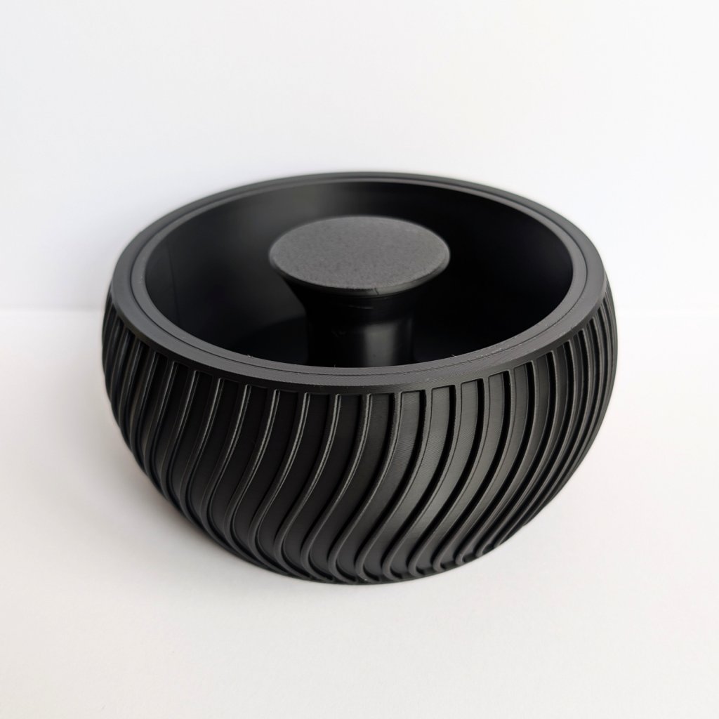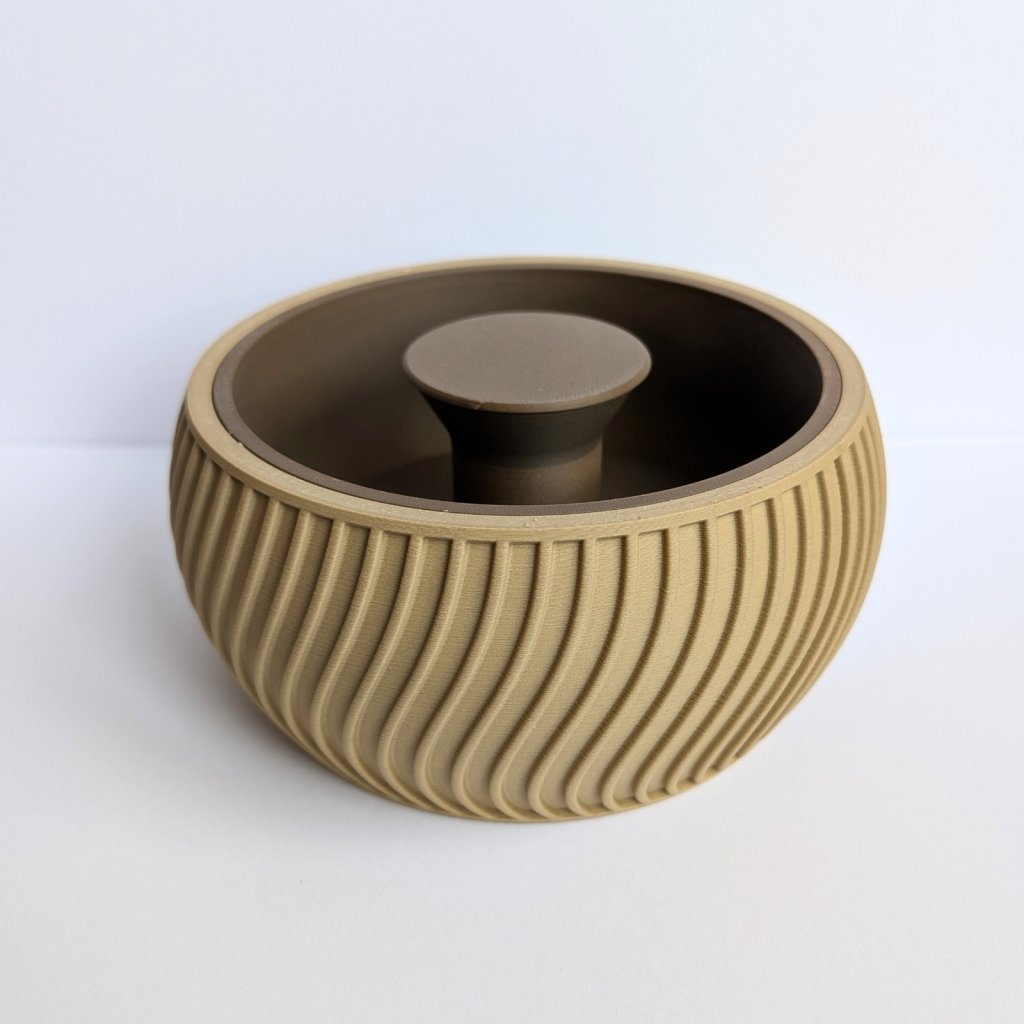 Díky tomuto řešení zůstává odpad skrytý zraku a váš stůl zůstane čistý po celou dobu mlsání. Miska je vyrobena pomocí 3D tisku z odolného a zdravotně nezávadného materiálu. Je lehká, stabilní a její moderní design se hodí do každého obýváku. Je to perfektní dárek pro milovníky pistácií, slunečnicových semínek nebo arašídů. Po použití stačí spodní část jednoduše vysypat.