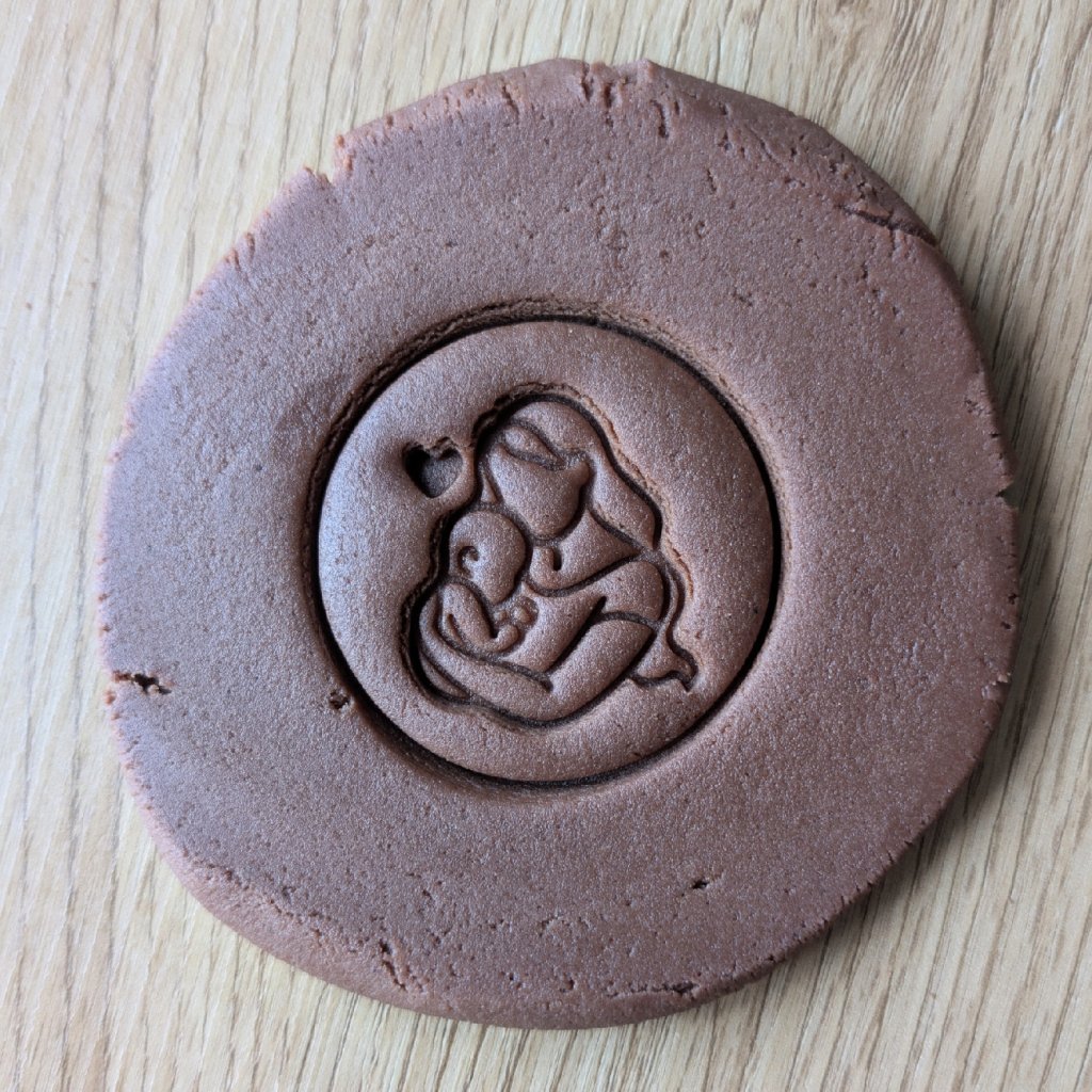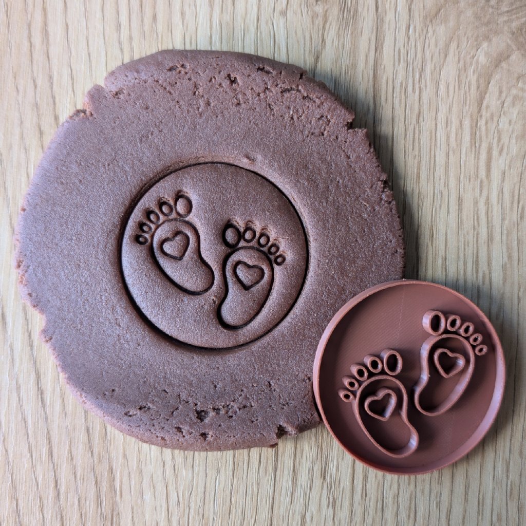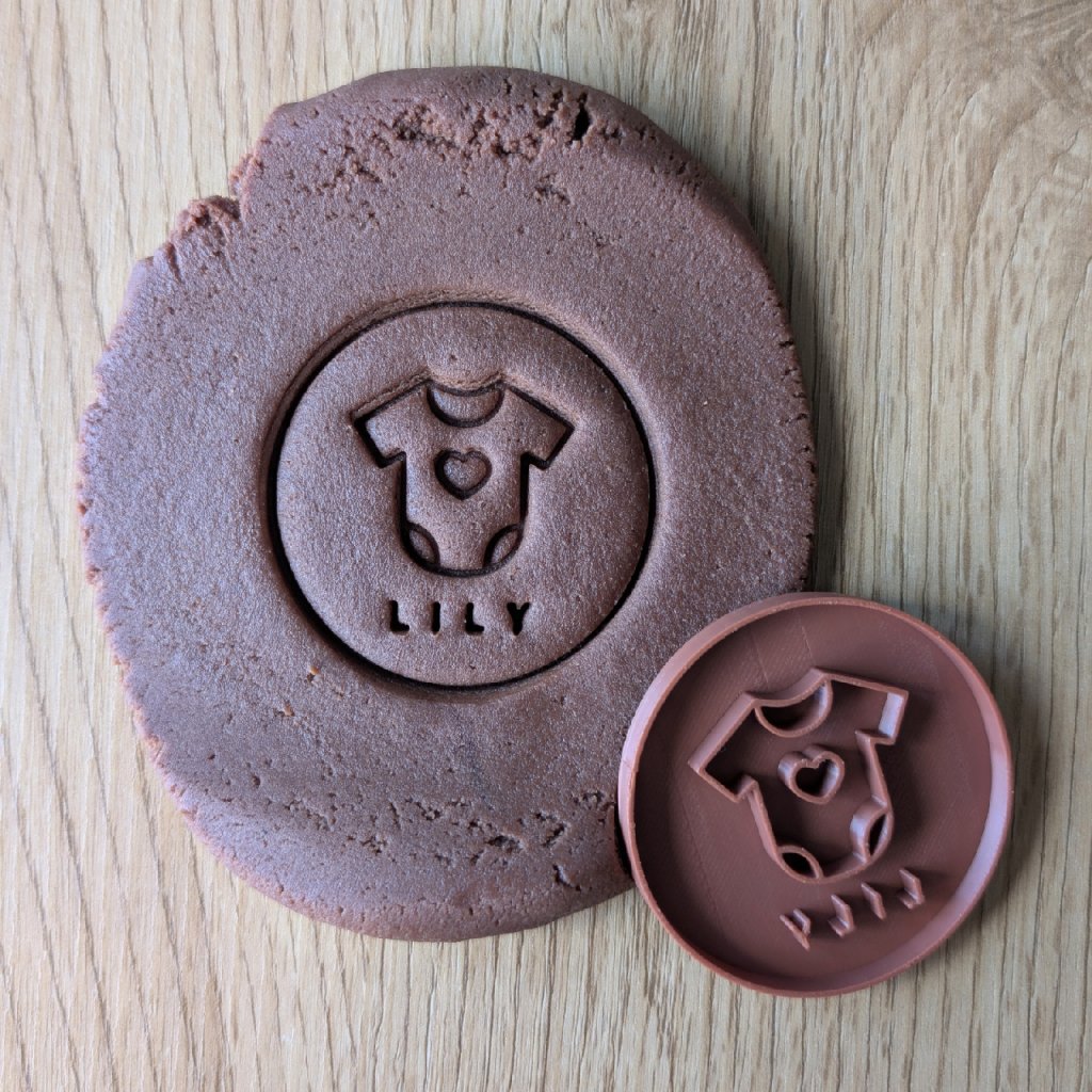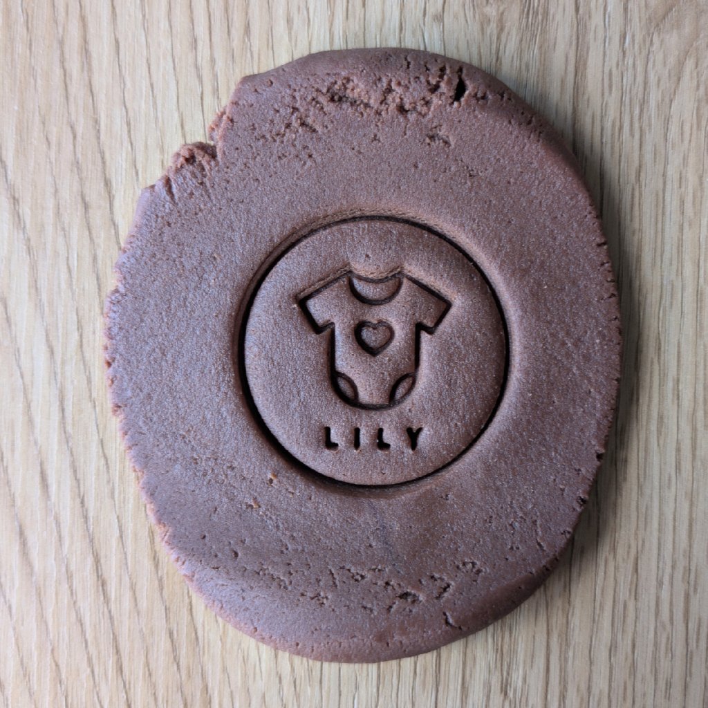 Sada obsahuje jedno kulaté obrysové vykrajovátko a pět kruhových razítek. Čtyři razítka mají krásné dětské motivy (např. ručička, stopa, kočárek, máma s miminkem). Páté razítko je personalizované s vlastním jménem na přání, které dodá vašim sušenkám nezaměnitelnou hodnotu.
