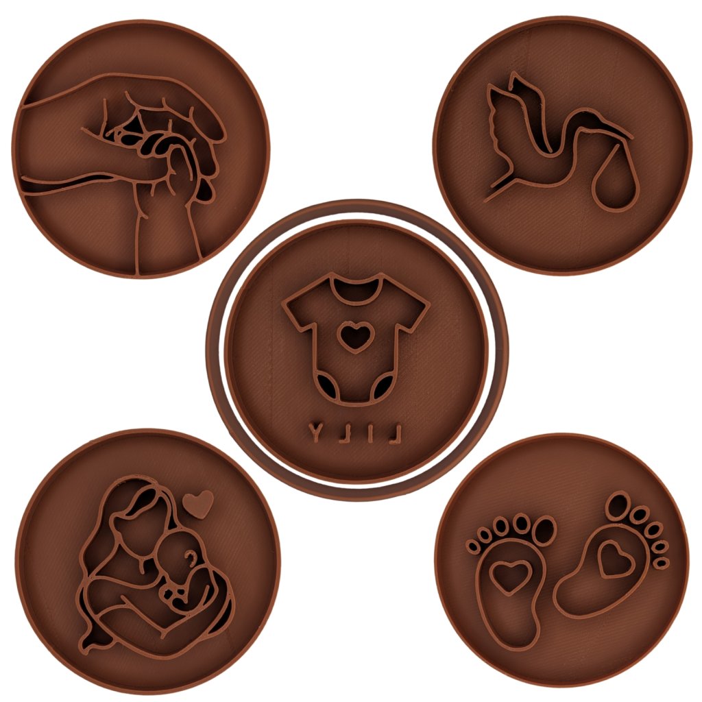 Sada vykrajovátek k narození miminka (5+1) s vlastním jménem | Personalizovaná sada vykrajovátek s razítkem