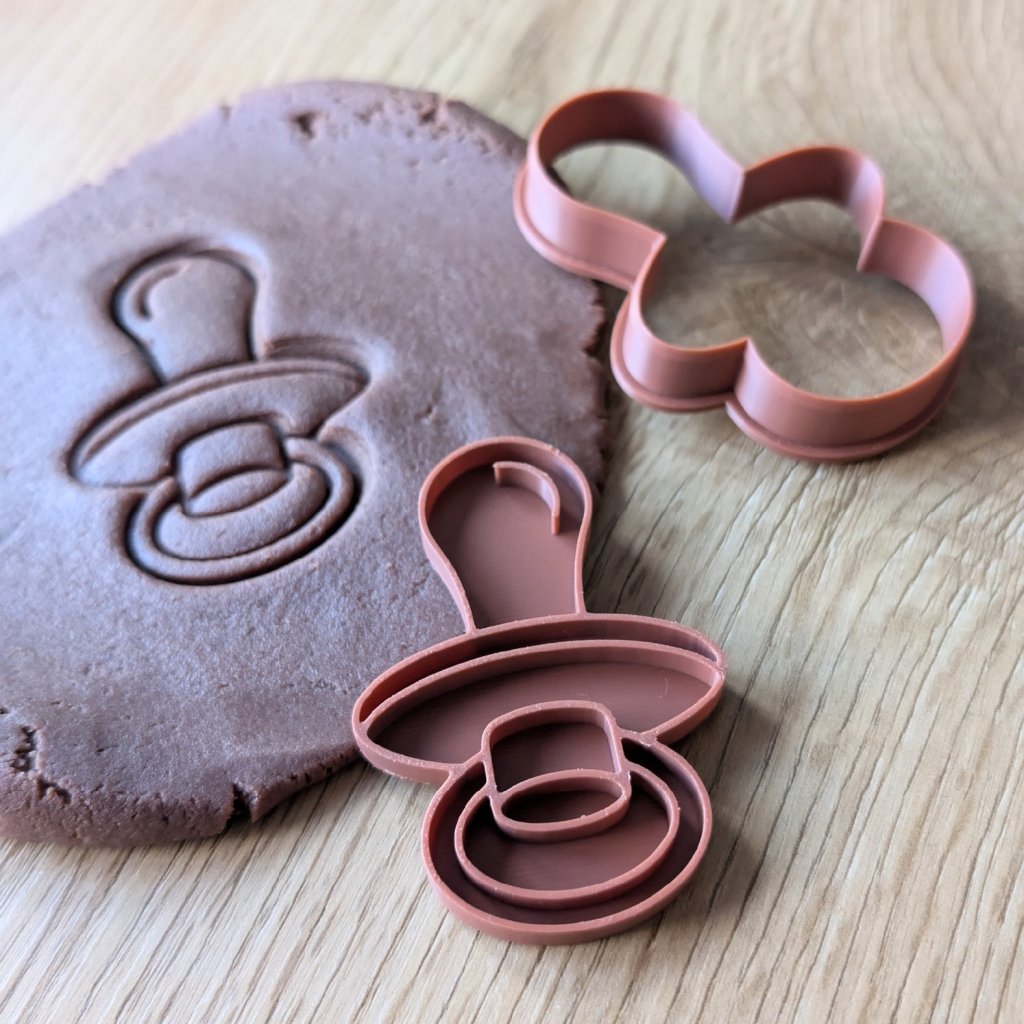 Oslavte narození miminka nebo baby shower s vykrajovátkem Dudlík. Tato vykrajovačka s razítkem je dokonalá pro vytvoření sušenek s detailním motivem dudlíku. V jednom kroku získáte přesný obrys a razítko obtiskne detaily, jako je kroužek a tvar savičky. Vzniknou tak nádherné sušenky s obtiskem, které se stanou sladkou památkou na tento významný den. Reliéf je zřetelný a můžete jej zvýraznit namočením razítka do kakaa před obtisknutím pro jemné stínování, nebo nechat cukroví v přírodním stavu. Jedná se o ideální formičku s razítkem pro sušenky na křtiny nebo baby shower. Vykrajovátko je vyrobeno z bezpečného a odolného plastu, což zajišťuje snadnou práci a dlouhou životnost. Použijte tuto originální plastovou vykrajovačku na sušenky, perníčky nebo na marcipán pro zdobení tematických dortů. Naše vykrajovátka dětské motivy promění pečení v radostnou oslavu nového života.