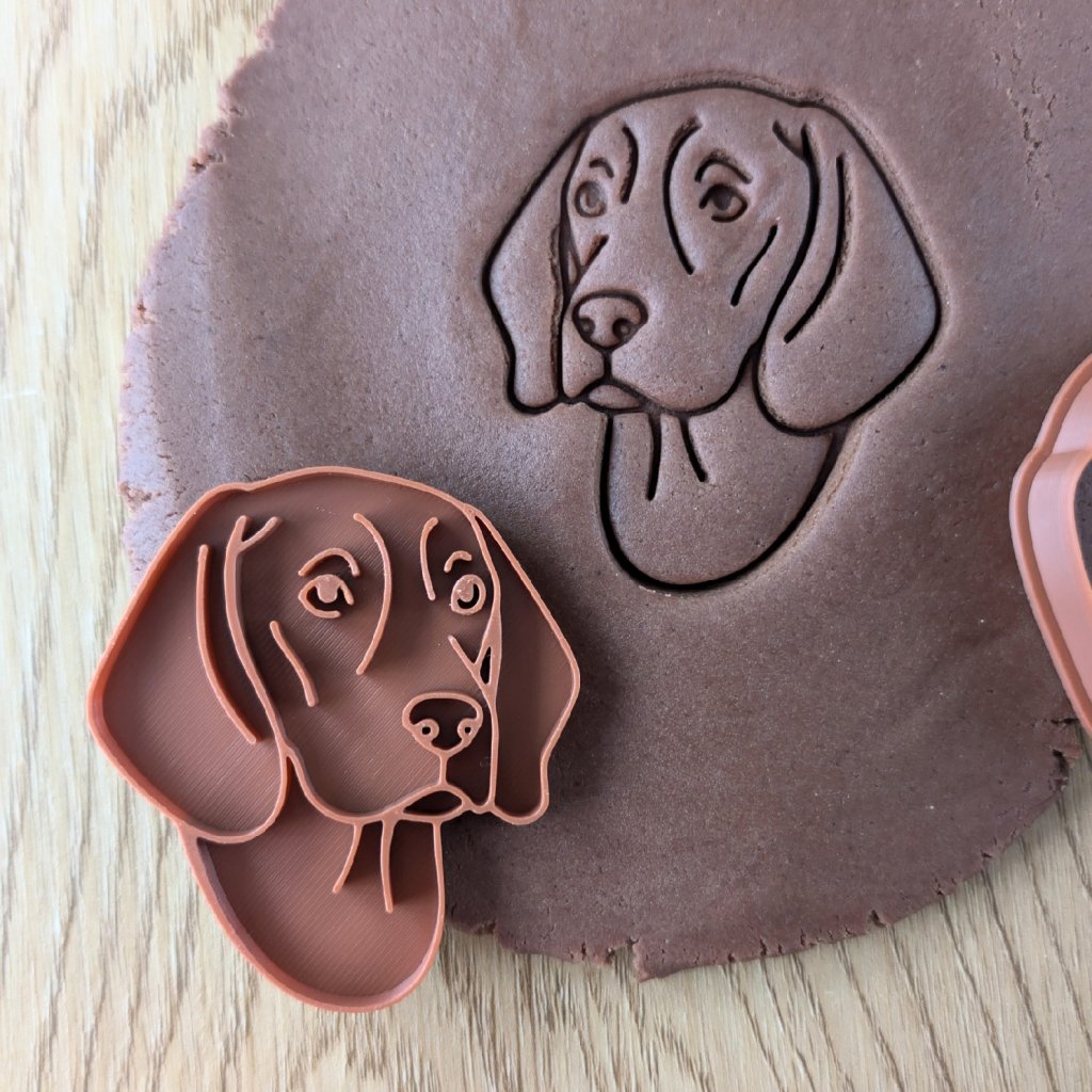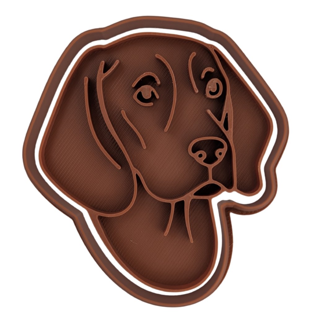 Potěšte všechny milovníky tohoto elegantního loveckého plemene s vykrajovátkem Bavorský barvář hlava. Tato vykrajovačka s razítkem je dokonalá pro vytvoření sušenek s detailním obtiskem hlavy psa, včetně jeho typických rysů a výrazu. V jednom kroku získáte přesný obrys hlavy a razítko obtiskne detaily plemene, jako jsou oči, čumák a tvar uší. Vzniknou tak nádherné sušenky s obtiskem, které se hodí jako dárky pro pejskaře nebo jako originální pamlsky pro vašeho vlastního barváře (z vhodného těsta).