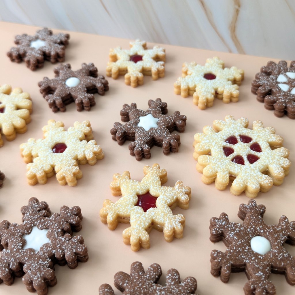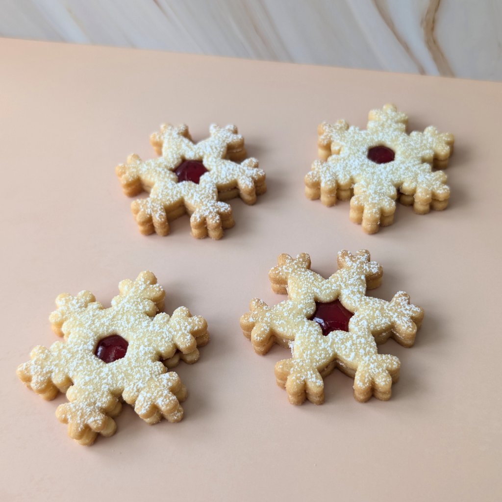 Klíčovou výhodou sady je možnost kombinace: můžete vytvořit čtyři různé varianty lineckého, kde se různé obrysy potkávají s různými vnitřními otvory. To dodá vašemu lineckému cukroví moderní a rozmanitý vzhled.