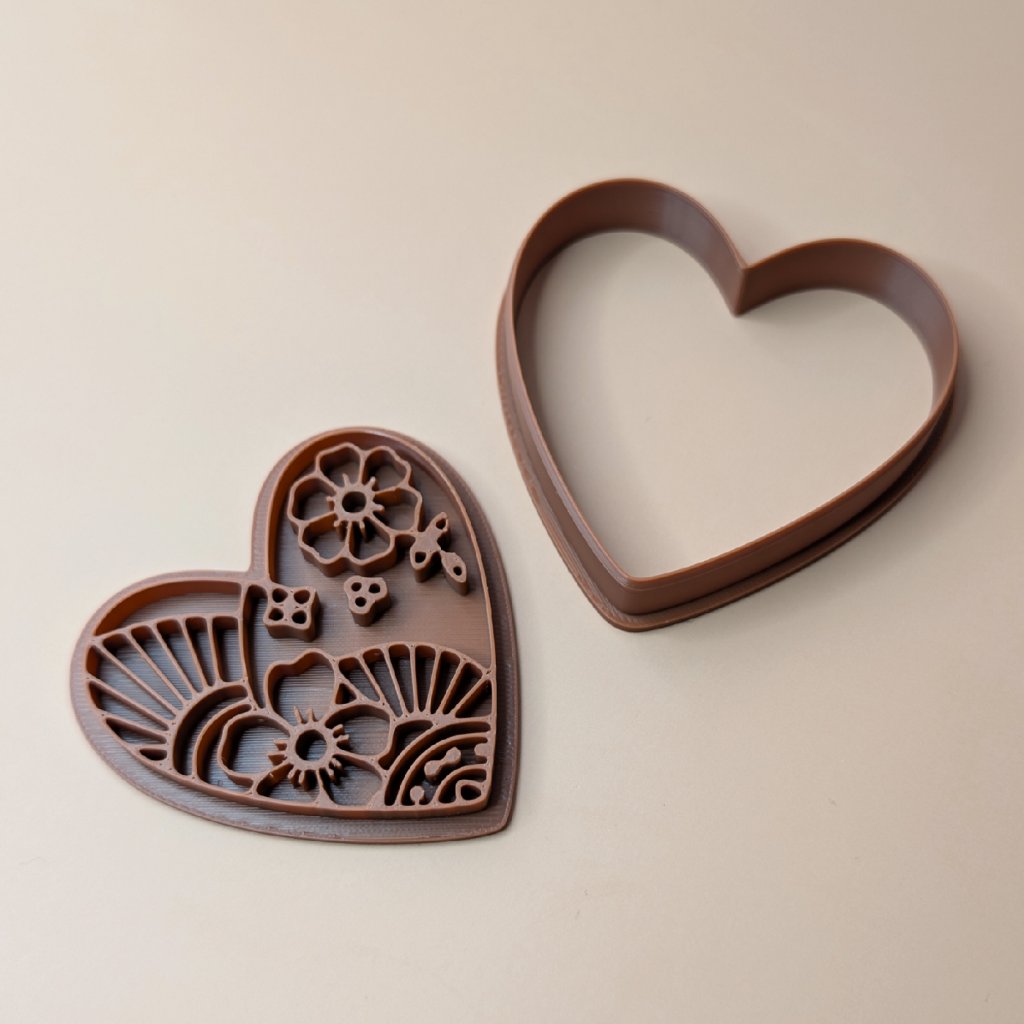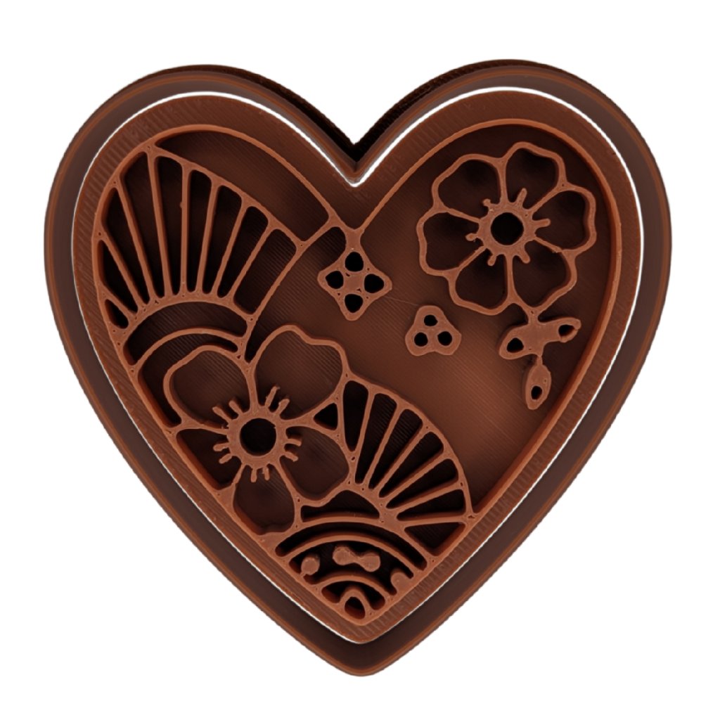 Vykrajovátko s razítkem Srdce s kytičkami | Květinový motiv v srdci