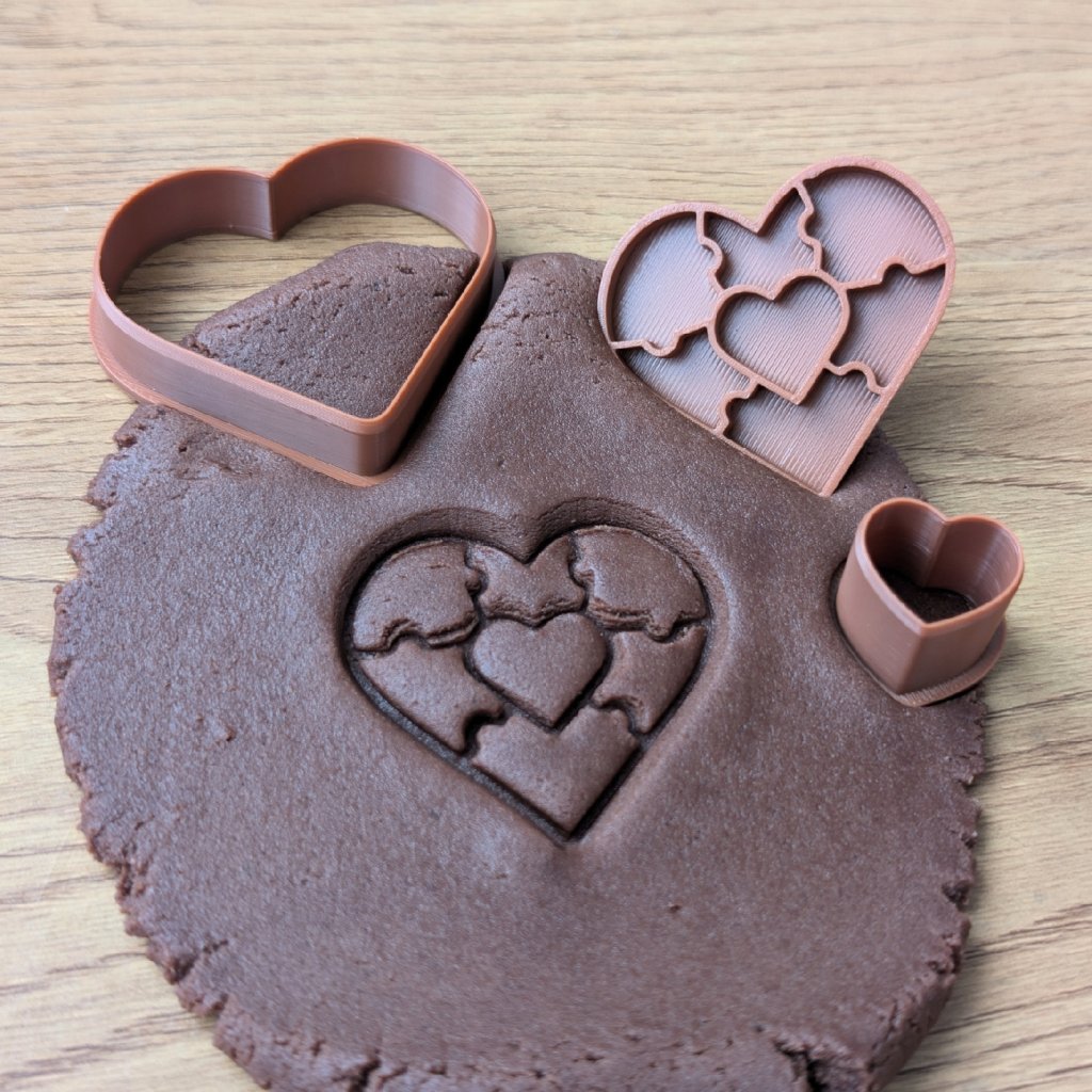 Vykrajovátko na linecké s razítkem Srdce puzzle | Formička na slepované cukroví