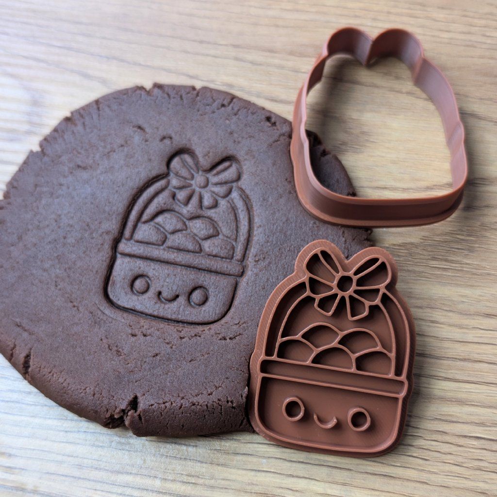 Tohle vykrajovátko s motivem košíku plného vajíček krásně doplní vaši velikonoční sbírku. Skládá se ze dvou částí – obrysové formičky, kterou z těsta čistě vykrojíte tvar košíčku, a samostatného razítka pro vytlačení detailů proutí a schovaných kraslic.