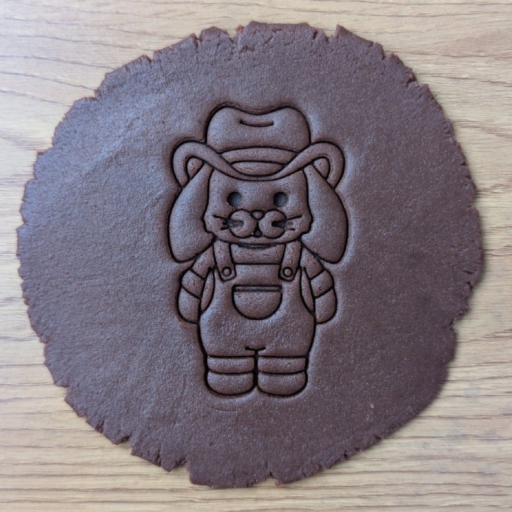Výhoda odděleného razítka je při práci s těstem obrovská. Těsto se vám nebude zbytečně lepit do drobných záhybů oblečku a vy (nebo děti) si jednoduše určíte, jak hluboký reliéf chcete do sušenky nebo perníčku vytlačit. Motiv králíčka krásně vynikne na klasických perníčkách, světlém lineckém i křehkých máslových sušenkách.