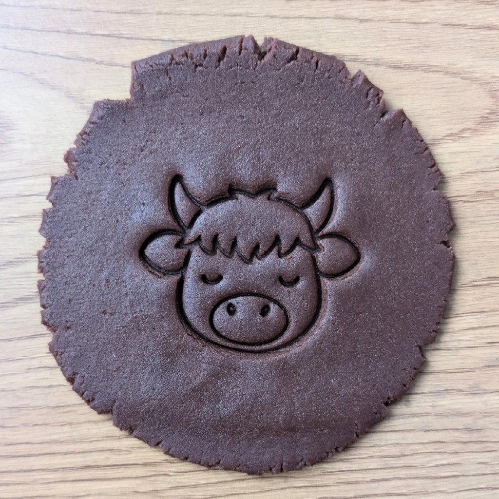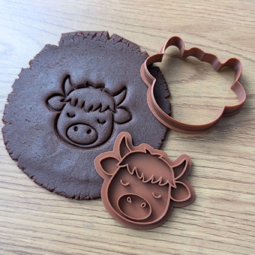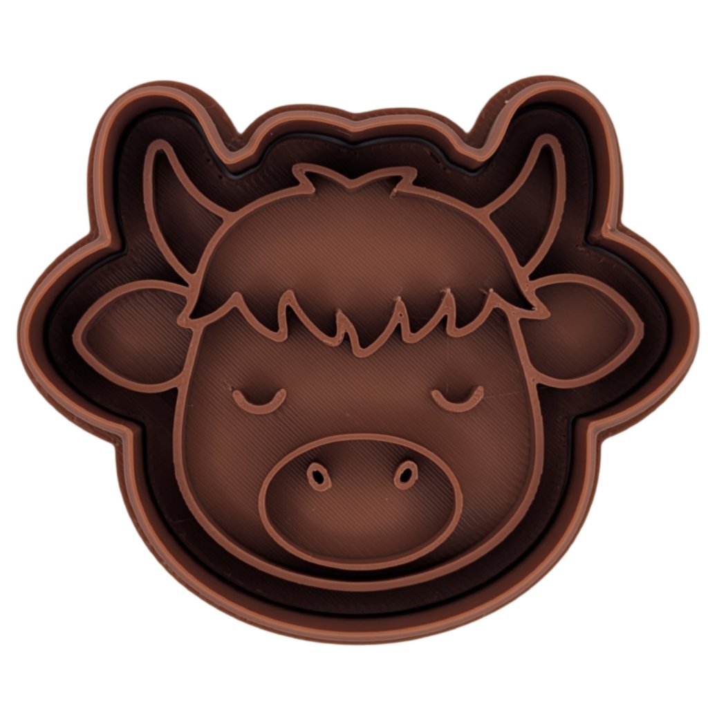 Tohle vykrajovátko s motivem roztomilé kravičky zaručeně potěší každého malého milovníka zvířátek. Skládá se ze dvou částí – obrysové formičky, kterou z těsta čistě vykrojíte tvar hlavy s oušky a rohy, a samostatného razítka pro vytlačení detailů obličeje a velkého čumáčku.