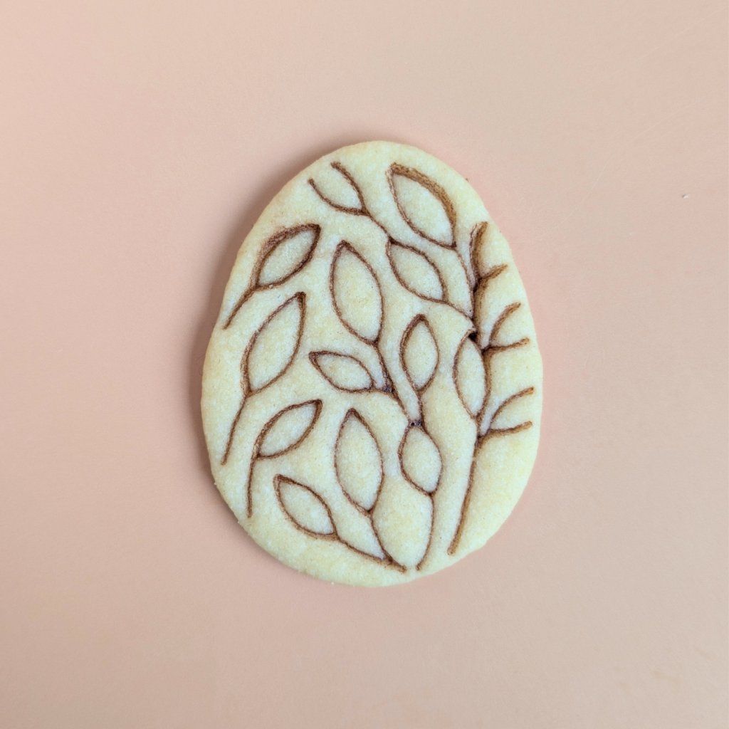 Pokud chcete, aby motiv lístků na světlém těstě opravdu vystoupil, zkuste razítko před otisknutím lehce namočit do kakaa. Vznikne tak krásný dvoubarevný detail bez složitého zdobení polevou. Vykrajovátko vyrábíme na 3D tiskárně z kvalitního a pevného plastu, který dobře drží tvar a po pečení se snadno myje.
