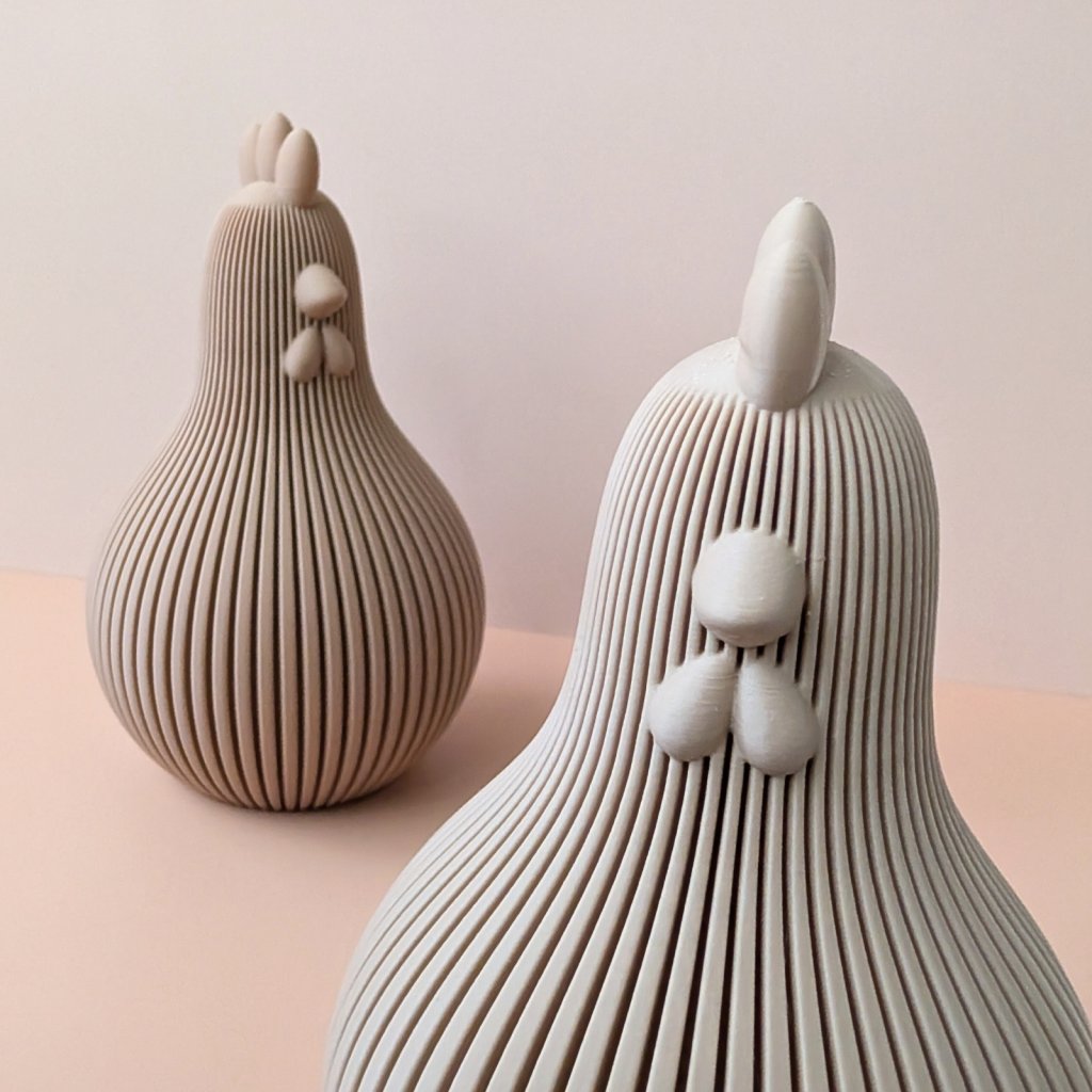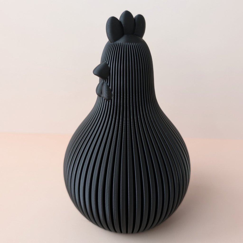 Ať už slepičku KoKo umístíte na svátečně prostřený stůl k upečenému beránkovi, na poličku v obývacím pokoji vedle vázy s kočičkami, nebo na okenní parapet, zaručeně upoutá pozornost návštěv a vnese do prostoru radostnou jarní náladu. Dekorace je vyrobena pomocí precizního 3D tisku z kvalitního materiálu, což zajišťuje její tvarovou stálost a lehkost. Udělejte si radost tímto nadčasovým kouskem, který rozzáří váš domov nejen během jarních svátků, ale klidně i po celý rok.