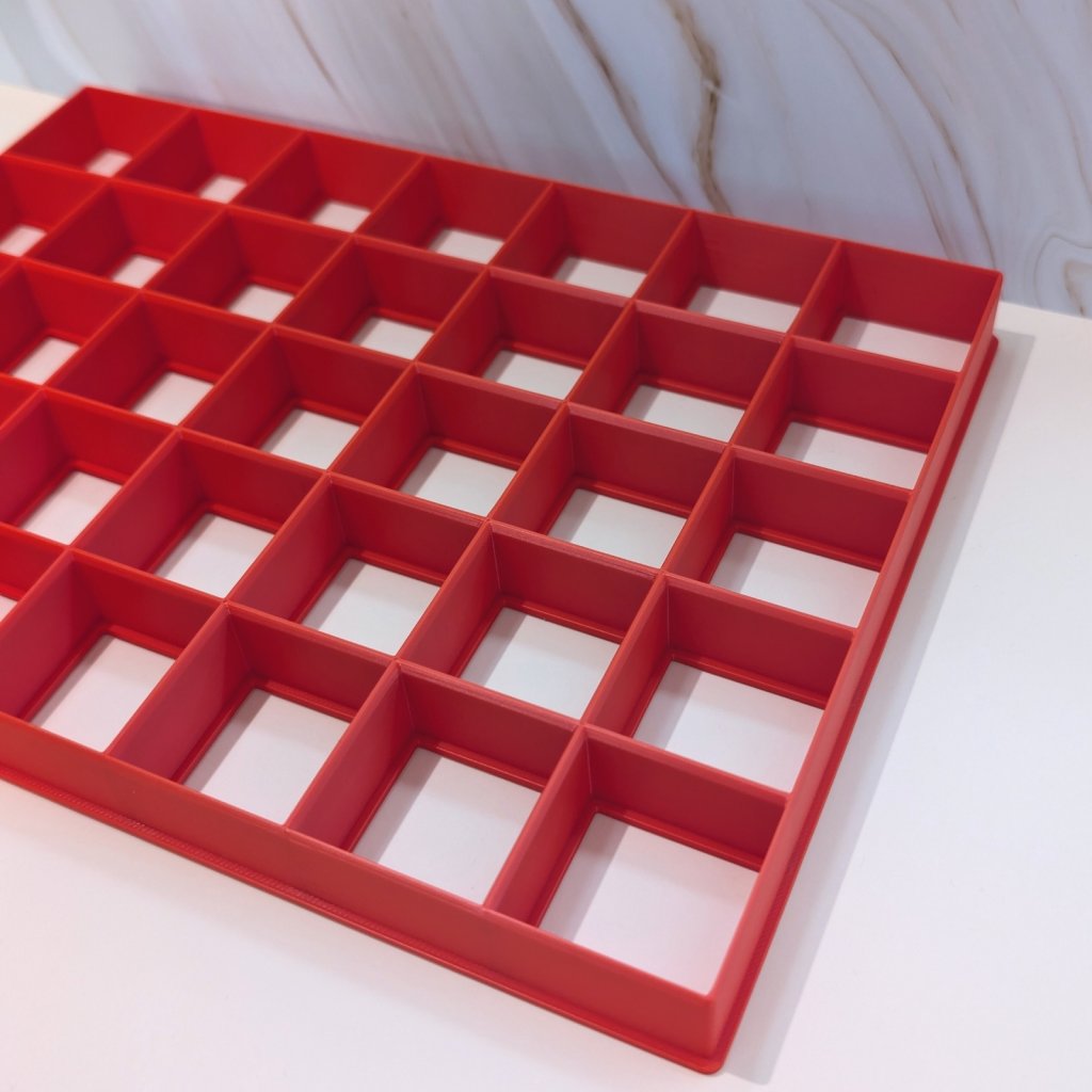 Zefektivněte své pečení s tímto praktickým vykrajovátkem na drobné koláčky ve formě mřížky. Nástroj je navržen tak, aby maximálně usnadnil práci při výrobě velkého množství stejně velkého cukroví. Mřížka 7x5 vytvoří jedním stiskem 35 identických čtvercových koláčků o přesném rozměru 3,7 cm x 3,7 cm. Po zakrojení a mírném "zavyklání" je rozměr cca 3,5 x 3,5 cm