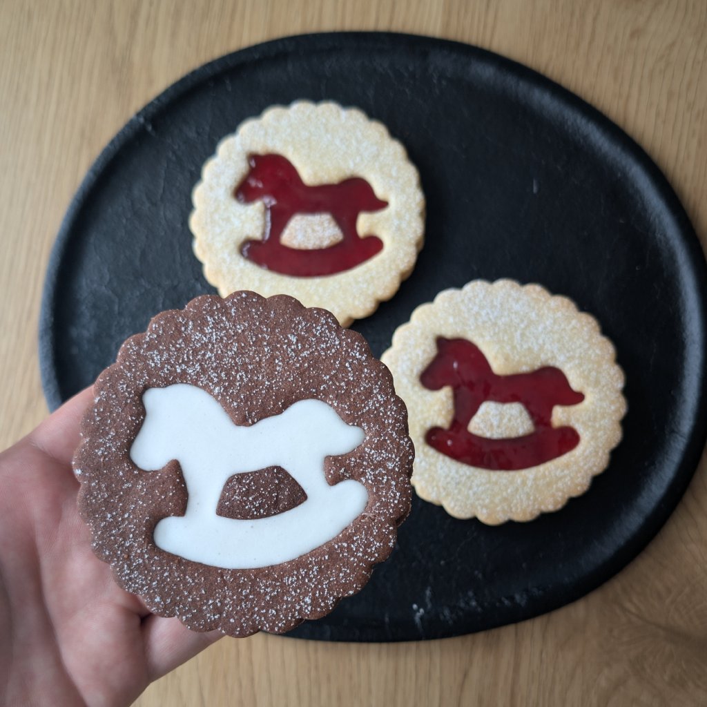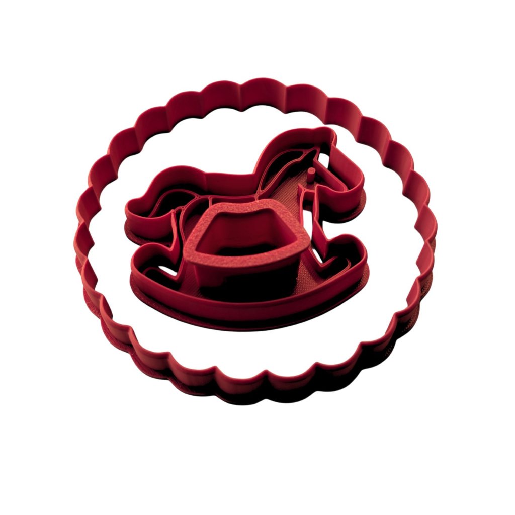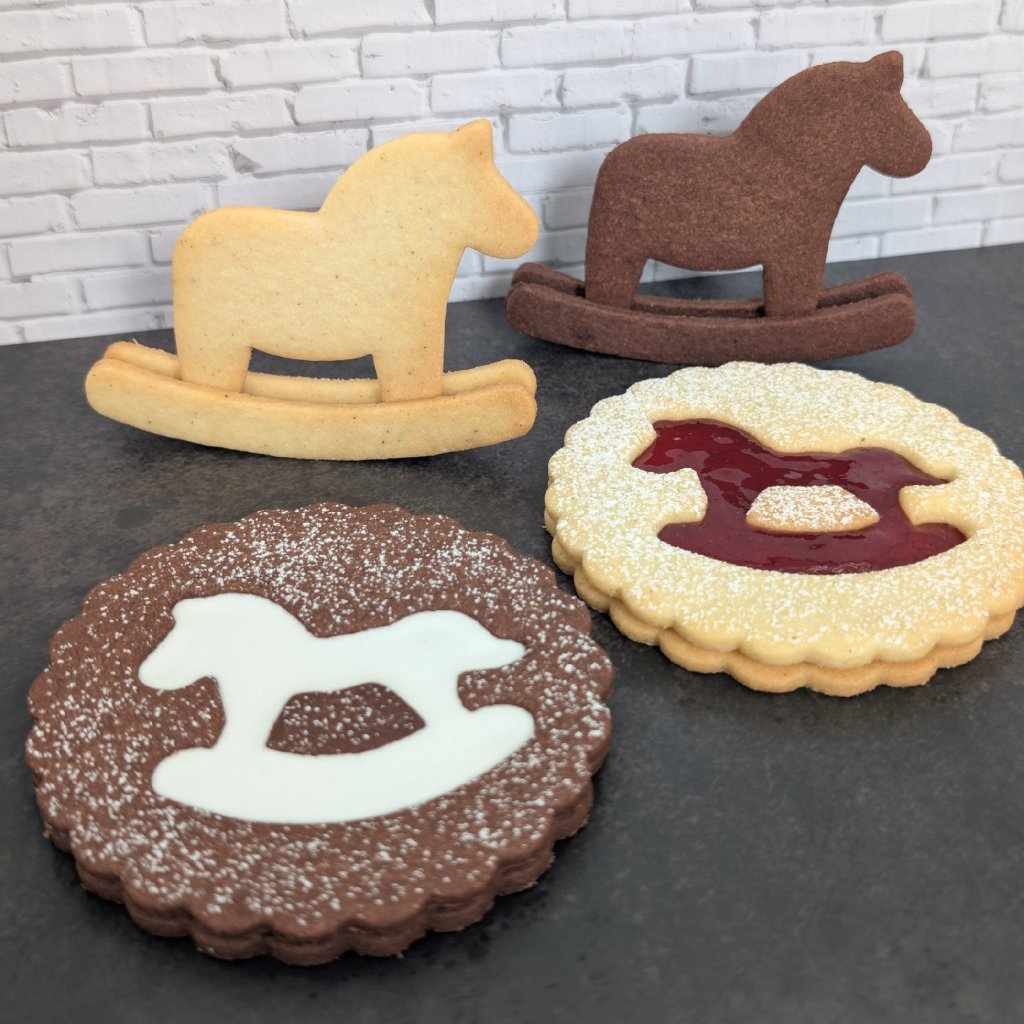 Tato originální formička ve tvaru houpacího koně je skvělým pomocníkem pro každého pekaře. Jde o vykrajovátko na linecké cukroví se skládá ze 4 částí. Jeden velký kruh, do kterého můžete vykrojit obrys koně. Na tento obrys můžete následně obtisknout vzor pomocí kakaa. A to není vše - 2 vykrjojené koně můžete slepit a pomocí posledního malého vykrajovátka uděláte otvor, kterým prosvítá marmeláda nebo čokoláda. Díky této formičce budou vaše linecké sušenky vypadat naprosto úchvatně a vaše návštěvy se nebudou moct vynadívat. Nejenže upečete tradiční cukroví, ale dodáte mu i originální vzhled, který se odliší od ostatních.
