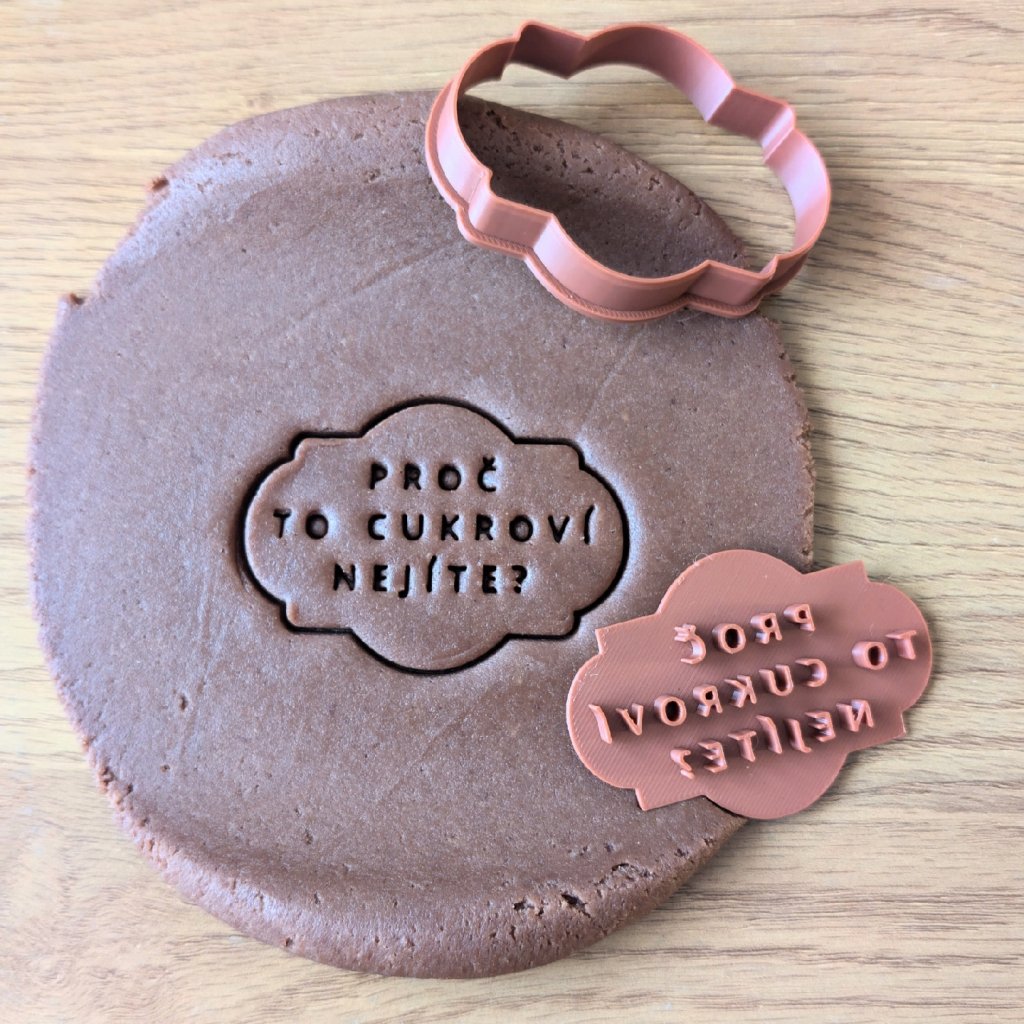 Vykrajovátko s razítkem Proč to cukroví nejíte | Vtipná 3D vykrajovačka