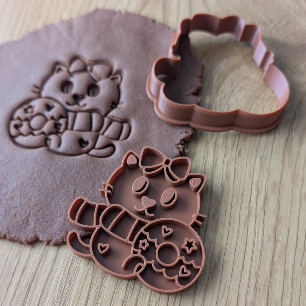 Zapojte svého chlupatého společníka do vánočního pečení s vykrajovátkem Kočka s Vánočním věncem. Tato vykrajovačka s razítkem je dokonalá pro vytvoření sušenek s hravým zvířecím motivem. V jednom kroku získáte přesný obrys kočičí hlavy a razítko obtiskne detaily věnce, který kočka hrdě drží, a její hravý výraz. Vzniknou tak nádherné sušenky s obtiskem, které budou milým doplňkem vánočního cukroví. Reliéf je zřetelný a můžete jej zvýraznit namočením razítka do kakaa před obtisknutím pro jemné stínování, nebo nechat perníčky v přírodním stavu. Kočka je oblíbený zvířecí motiv a tato formička s razítkem z bezpečného a odolného plastového materiálu je perfektní vykrajovátko pro pečení s dětmi. Použijte tuto plastovou vykrajovačku na perníčky, sušenky pro děti nebo na marcipán pro zdobení vánočních dortů. Naše originální vykrajovátka zvířecí motiv promění pečení v radostnou a pohodovou tradici.