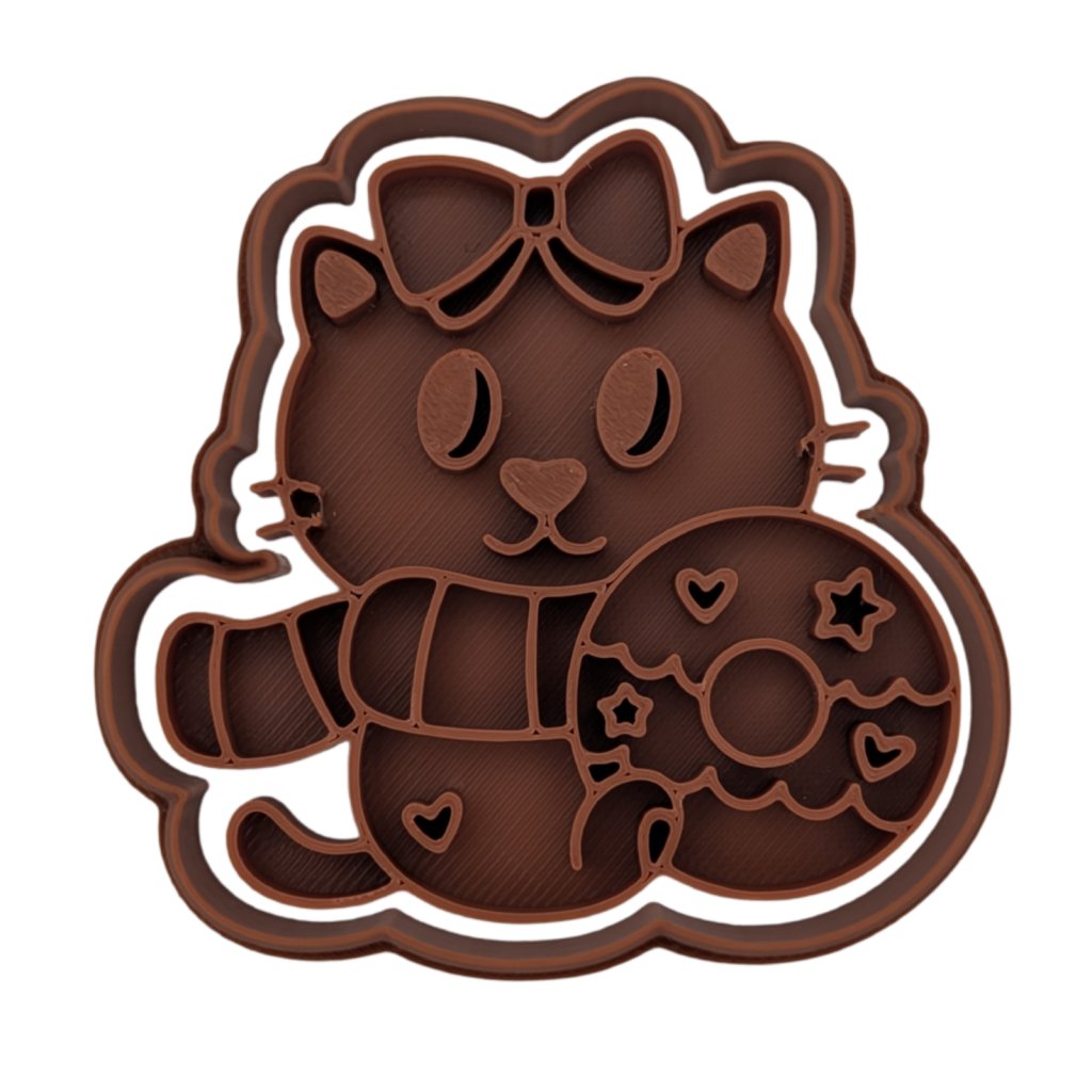 Vykrajovátko s razítkem Kočka s Vánočním věncem | Perníček se zvířecím motivem