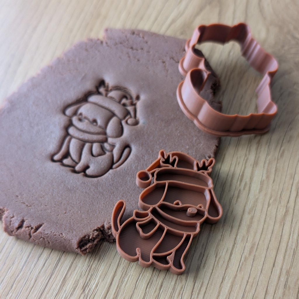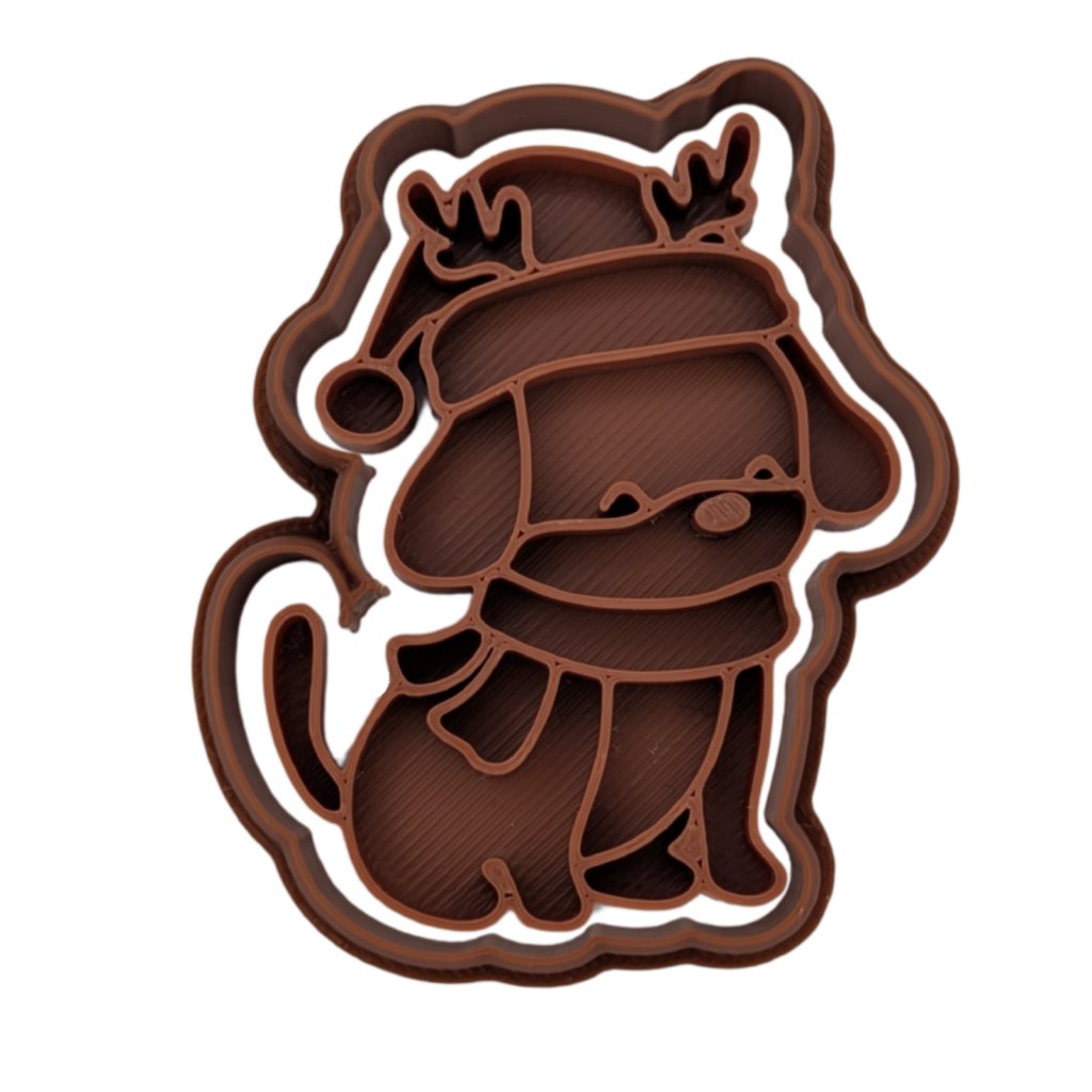 Vykrajovátko s razítkem Vánoční pes s čepicí a parůžky | Formička ve tvaru zvířátka