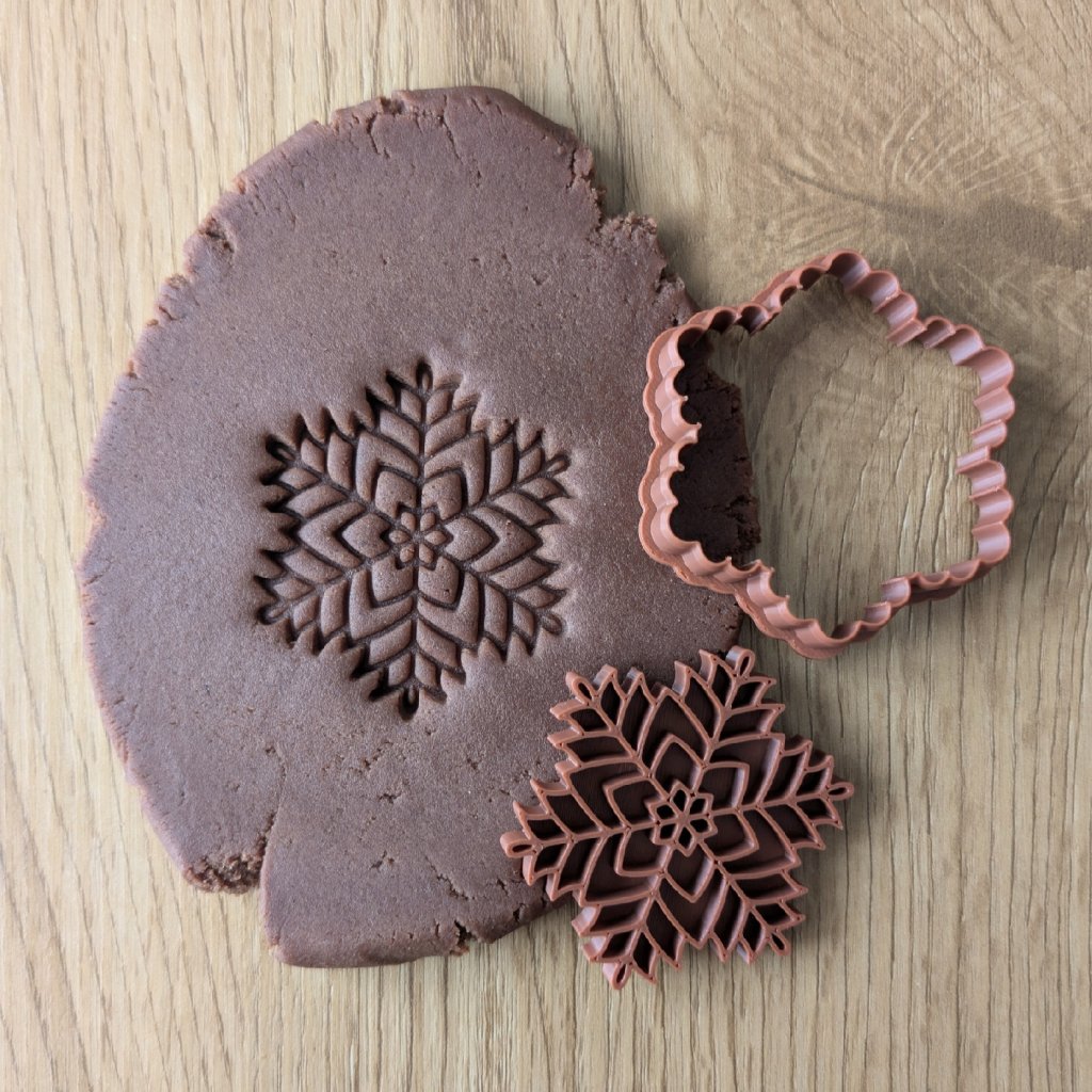 Vykrajovátko s razítkem Vločka roztřepená | Formička s razítkem na Vánoční sušenky