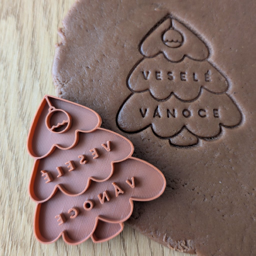 Vykrajovátko s razítkem Zasněžený strom VESELÉ VÁNOCE | Cukroví s přáním Veselých Vánoc