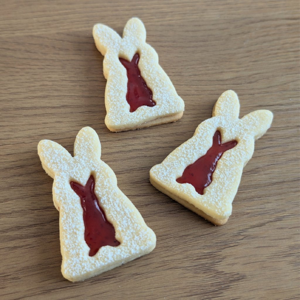 Sada se skládá ze tří dílů – velké obrysové formičky, kterou vykrojíte plné spodní i vrchní díly cukroví, malé zaječí formičky pro přesné vykrojení středového okénka a navíc malého vroubkovaného kroužku, který můžete využít třeba pro vykrojení roztomilého ocásku. Právě díky zaječímu okénku krásně vynikne v hotovém cukroví barevná marmeláda.
